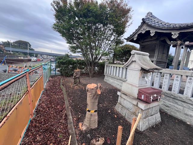 10月に穂見神社境内の大きな木は全て伐採されていました。神社を守っている方々が高齢になって境内の清掃が大変になってきたからということらしいのですが・・・
