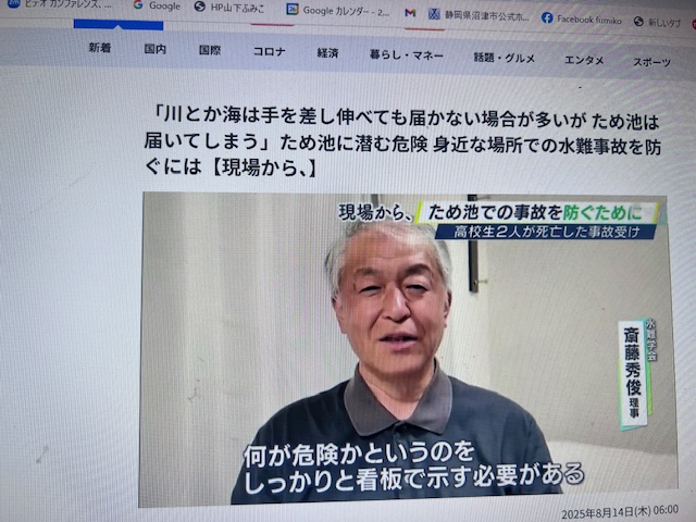 今回の門池事故について水難学会の斎藤秀俊理事のコメント: