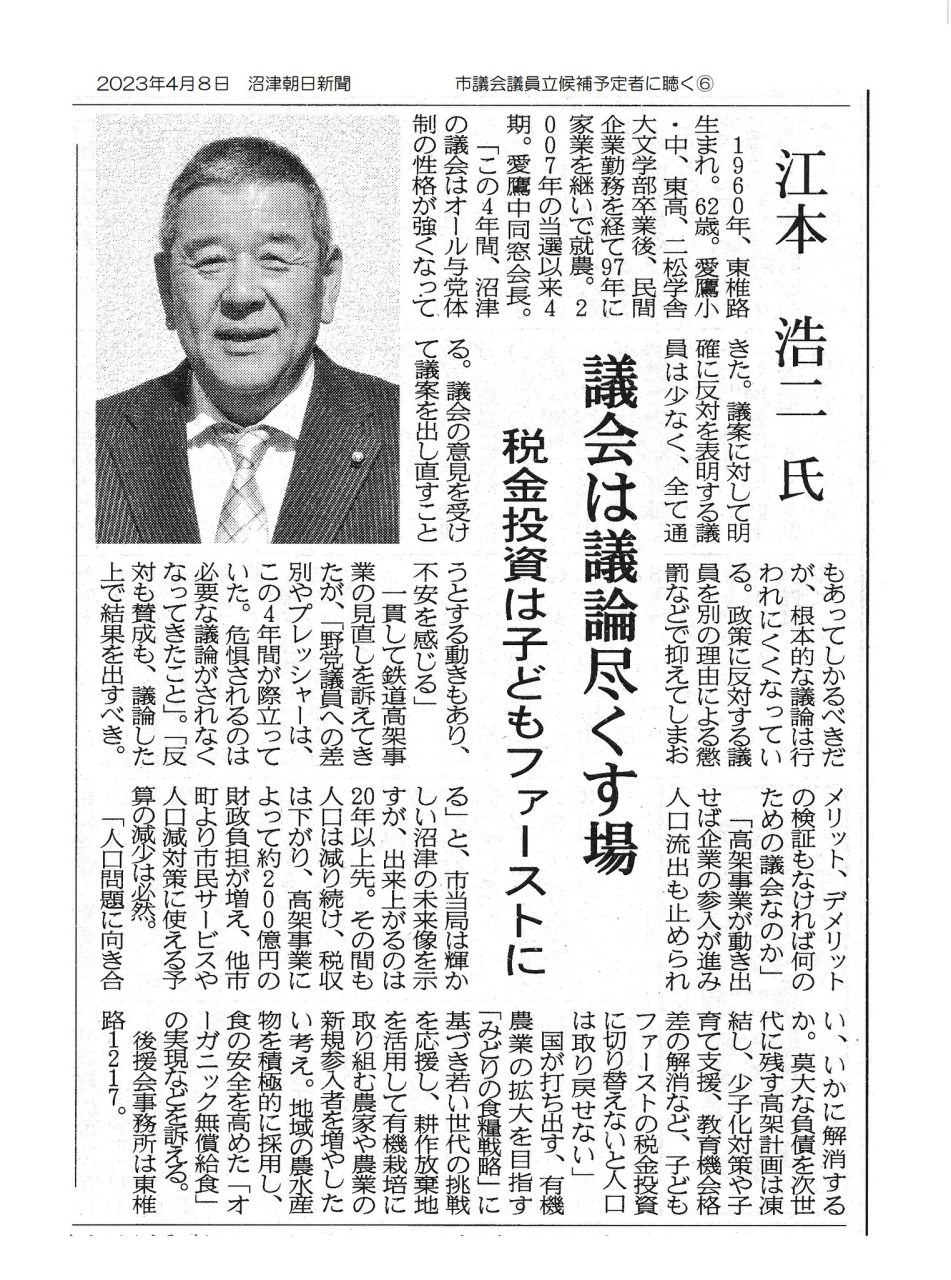 江本浩二議員の逝去