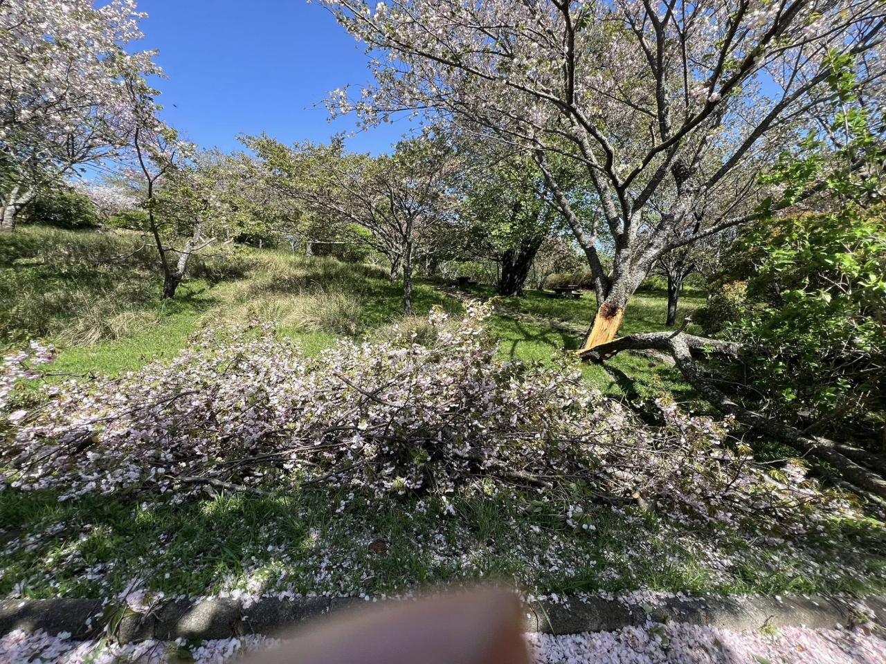 香貫山の桜の木が昨夜の風雨で折れて、道を塞いでいるという電話が入る。ただ、今日は香貫山影奉仕の196回目の清掃。まずは香貫山へ急ぐ。