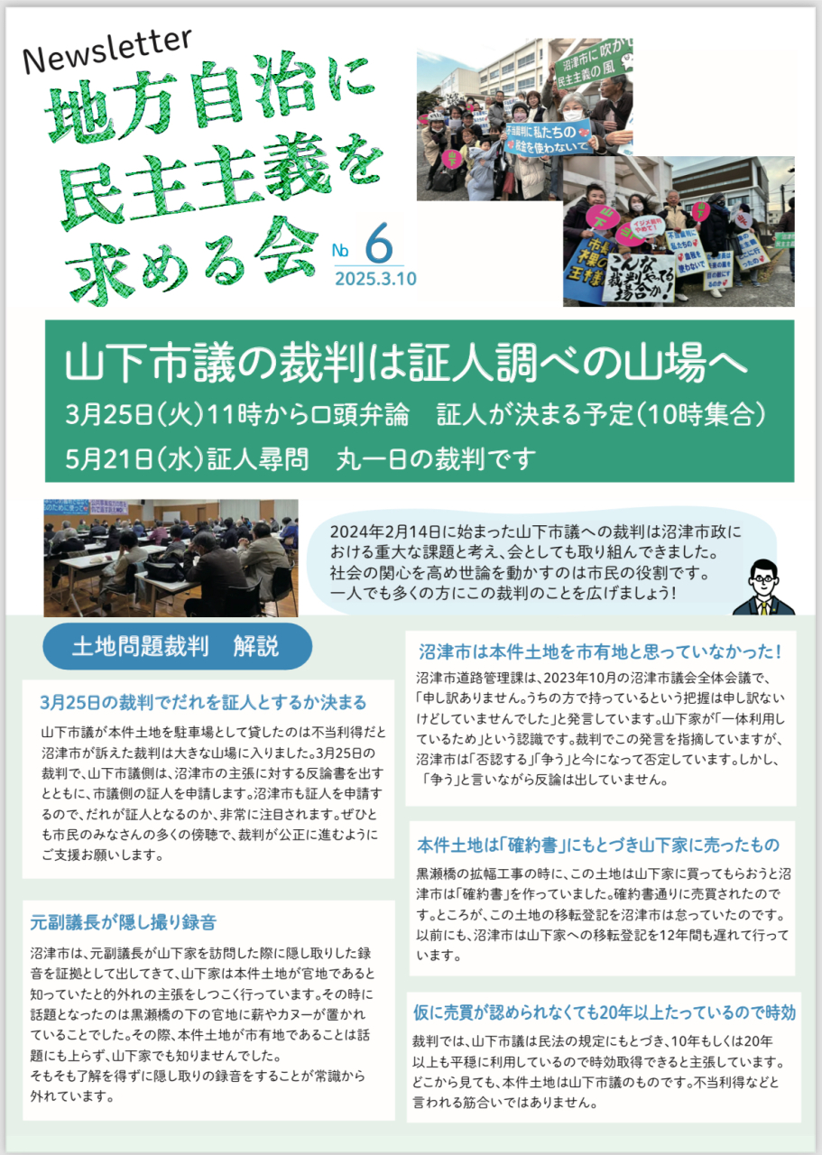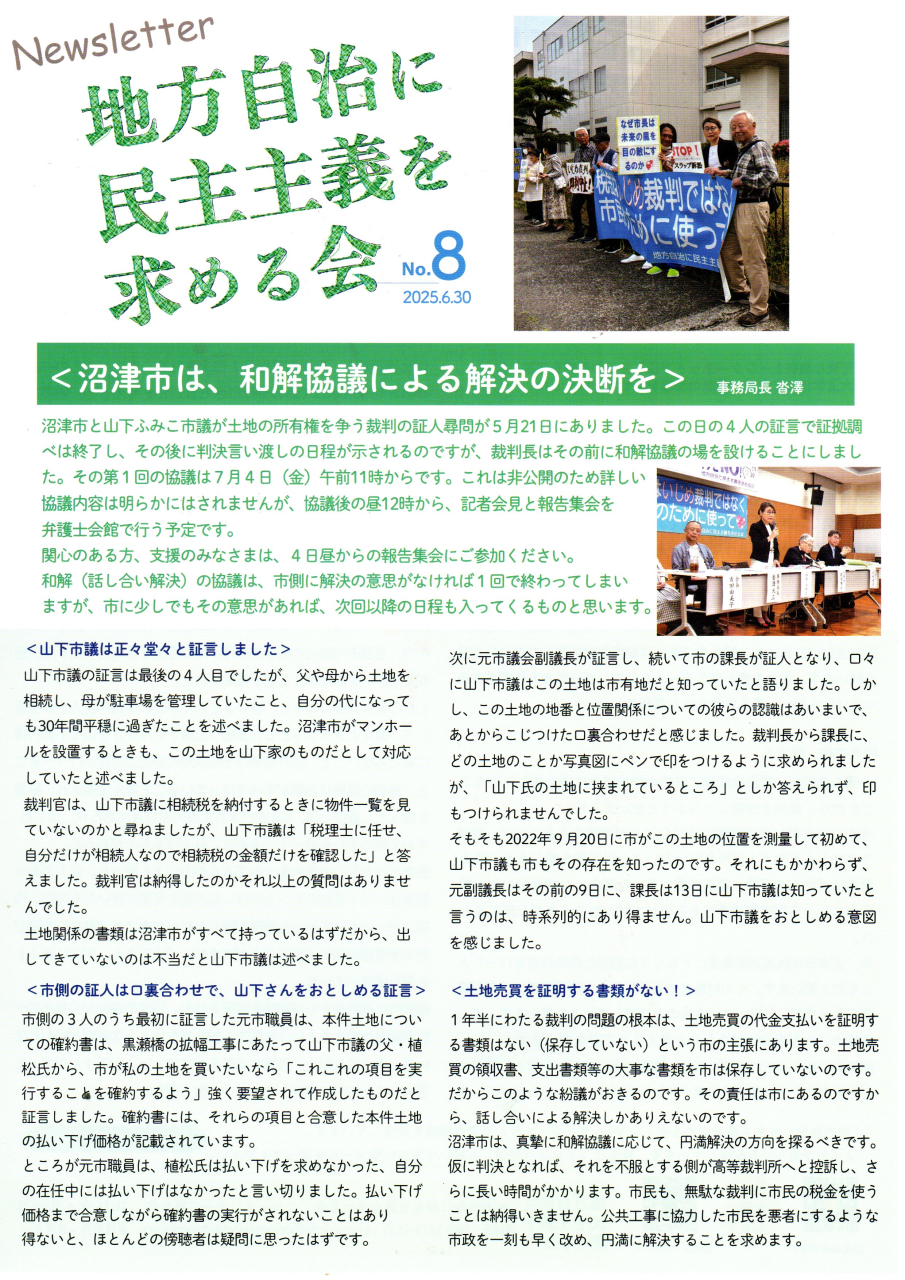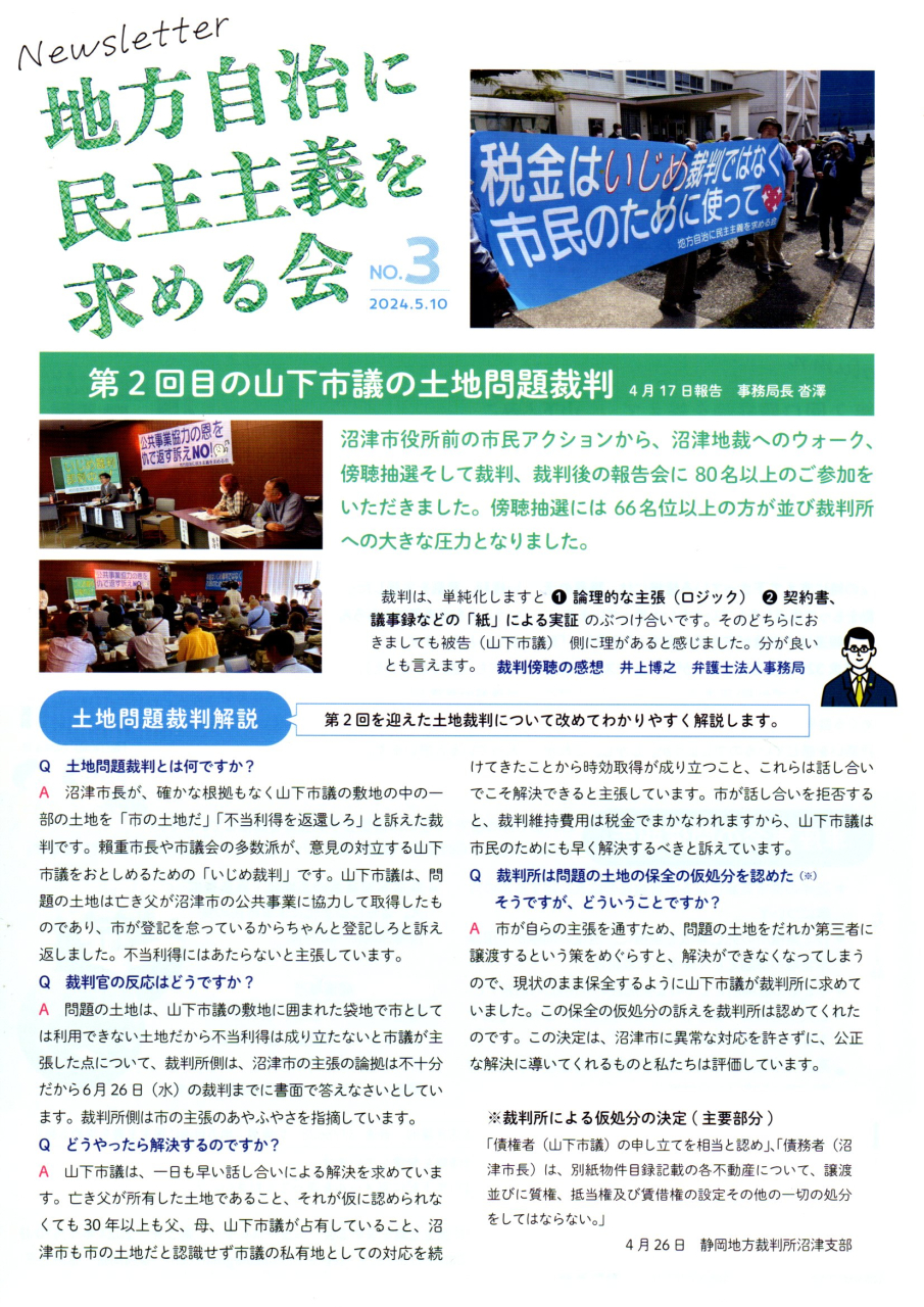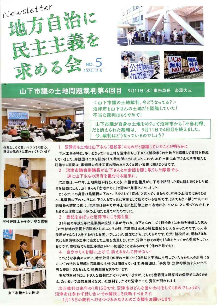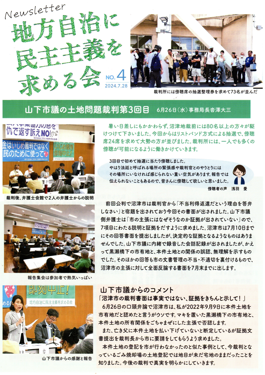 「地方自治に民主主義を求める会」のニュースレター(裁判レポート)