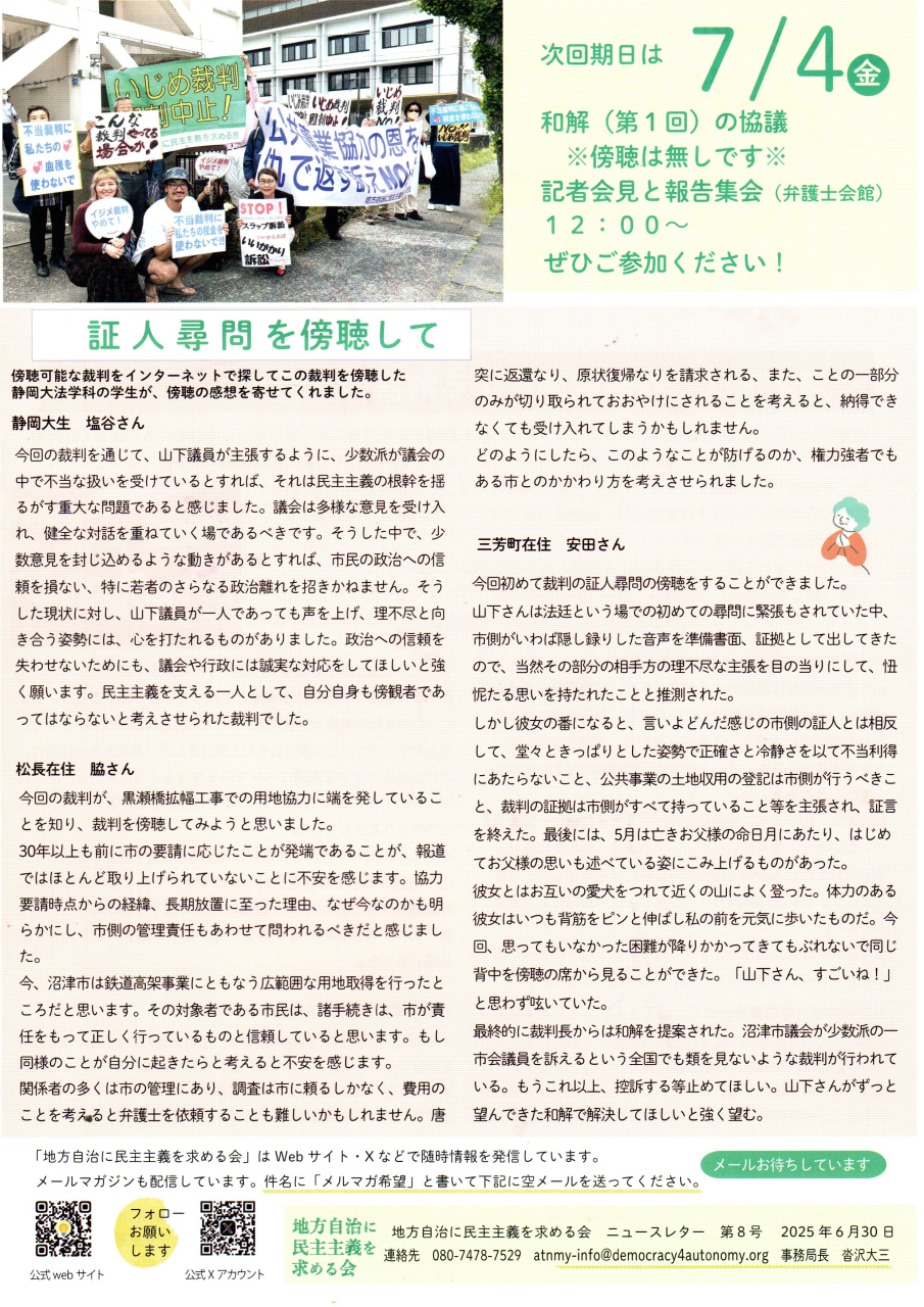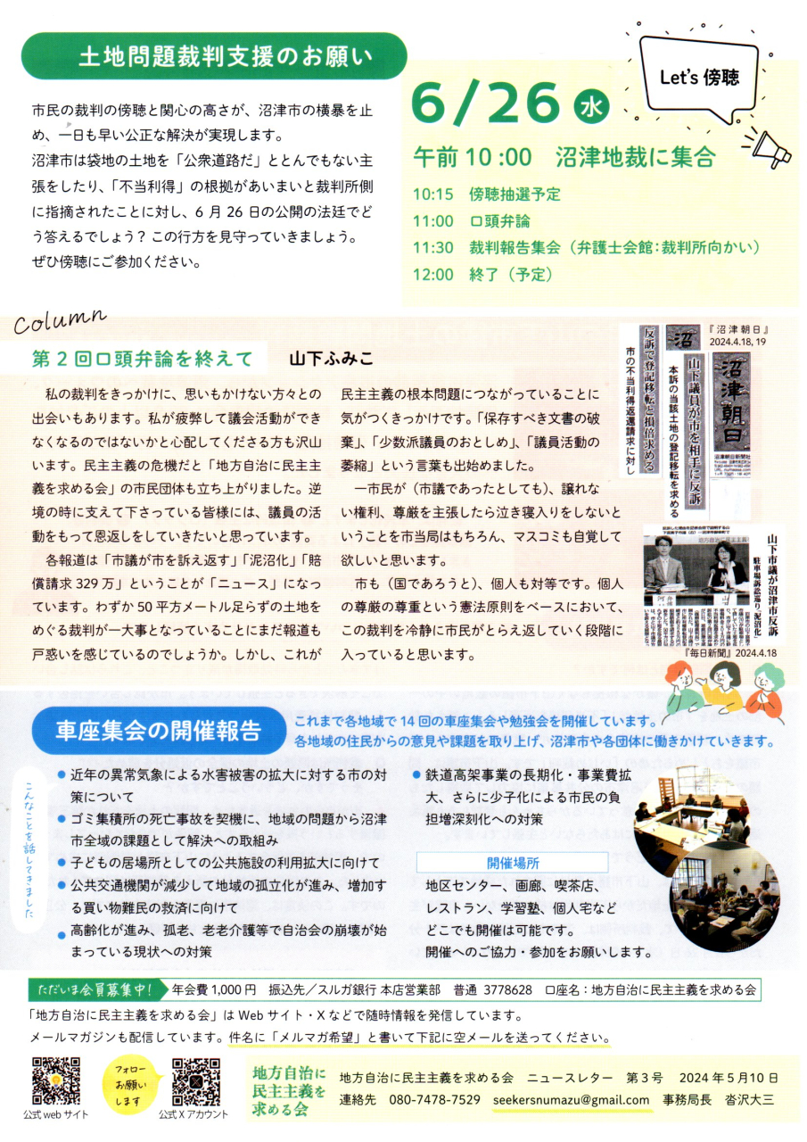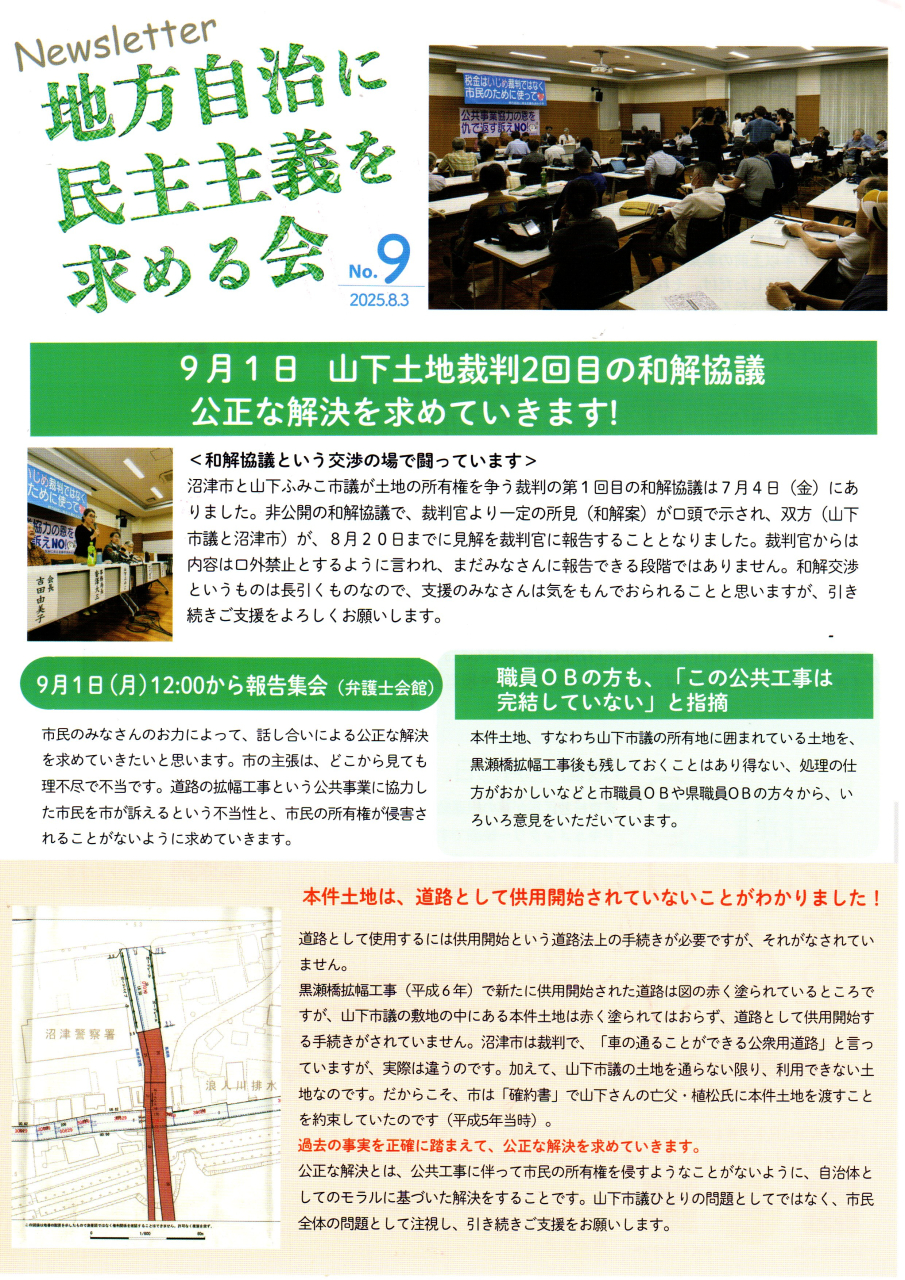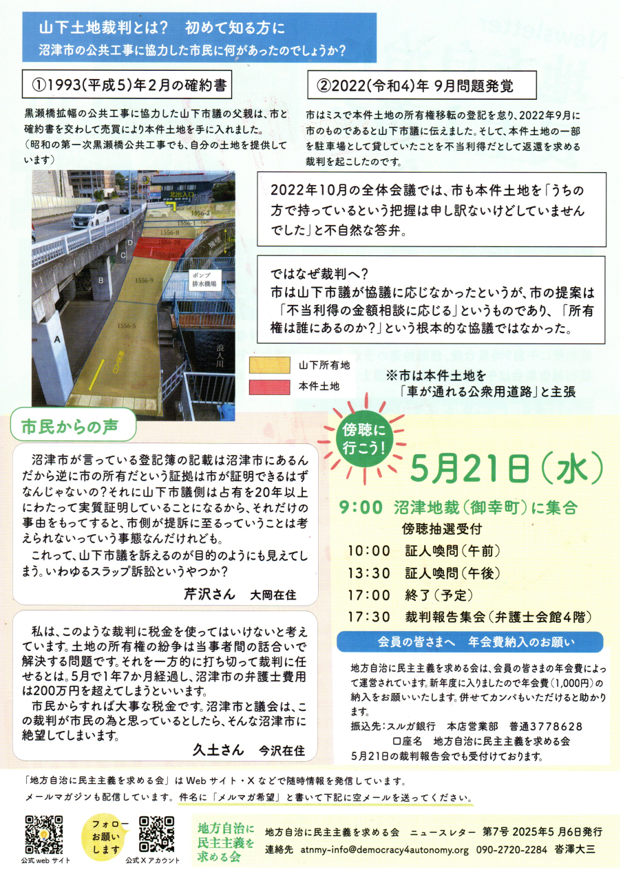「地方自治に民主主義を求める会」のニュースレター(裁判レポート)