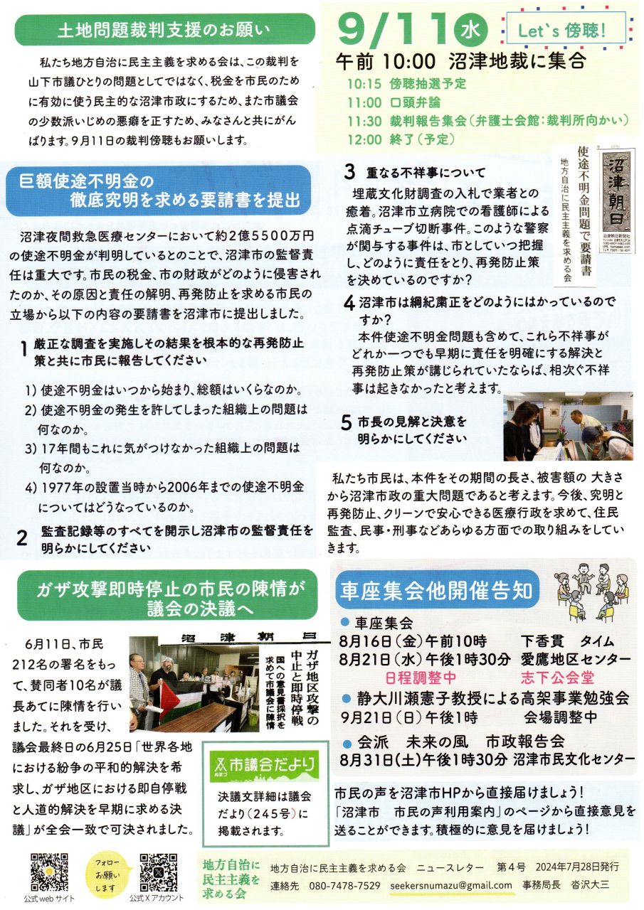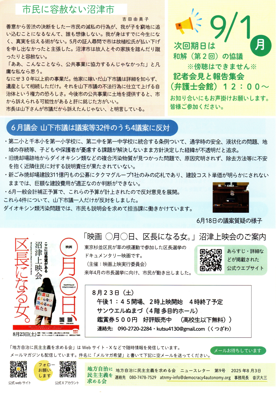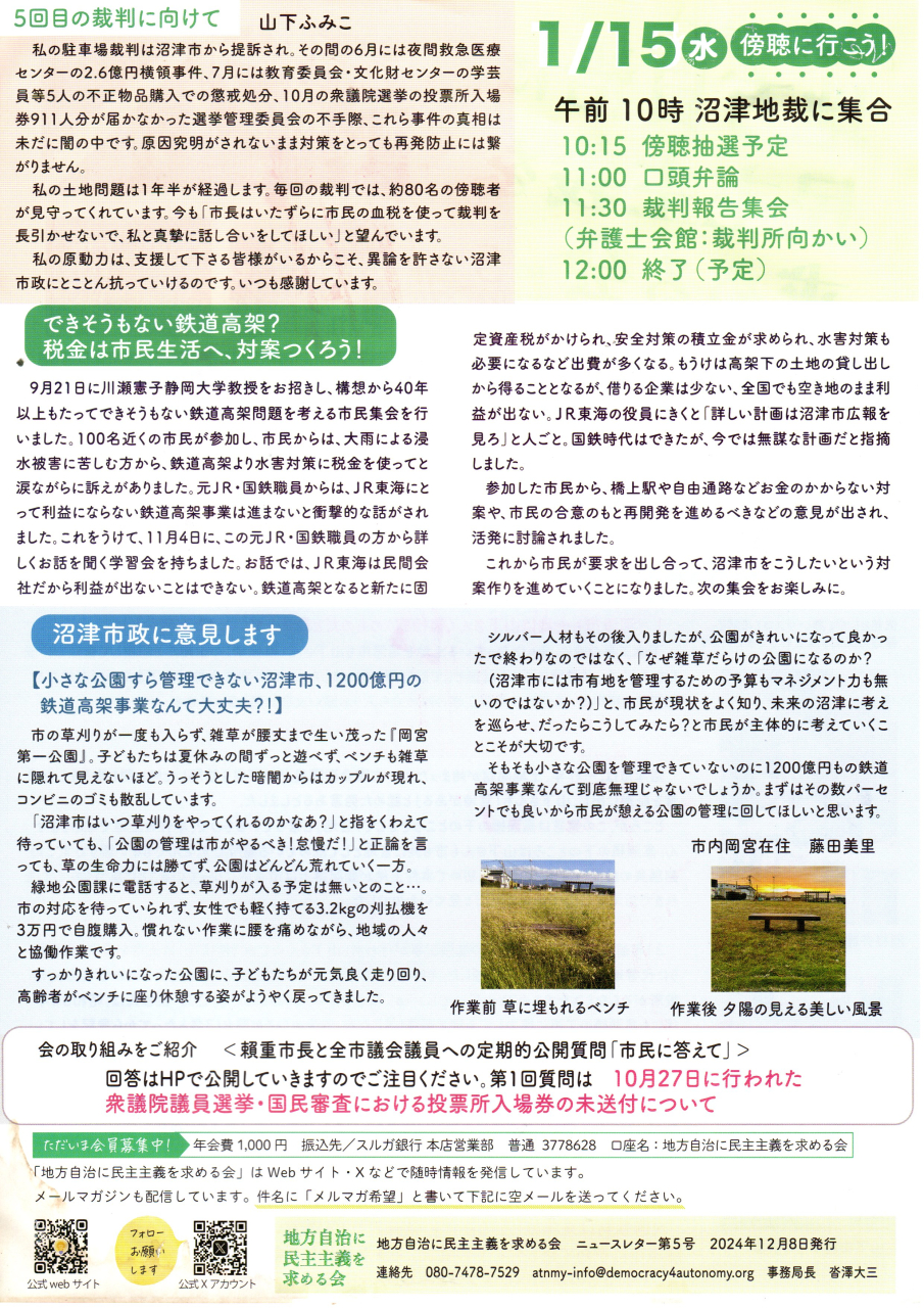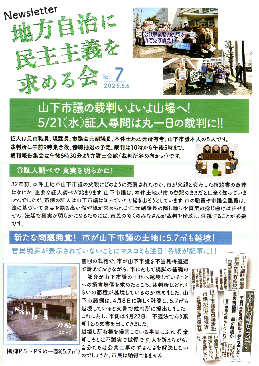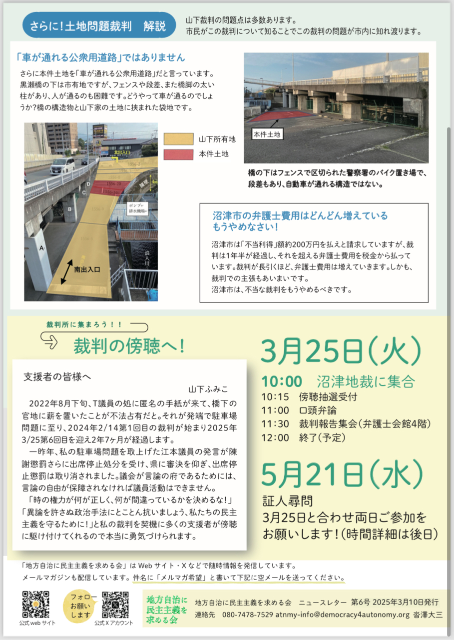 「地方自治に民主主義を求める会」のニュースレター(裁判レポート)